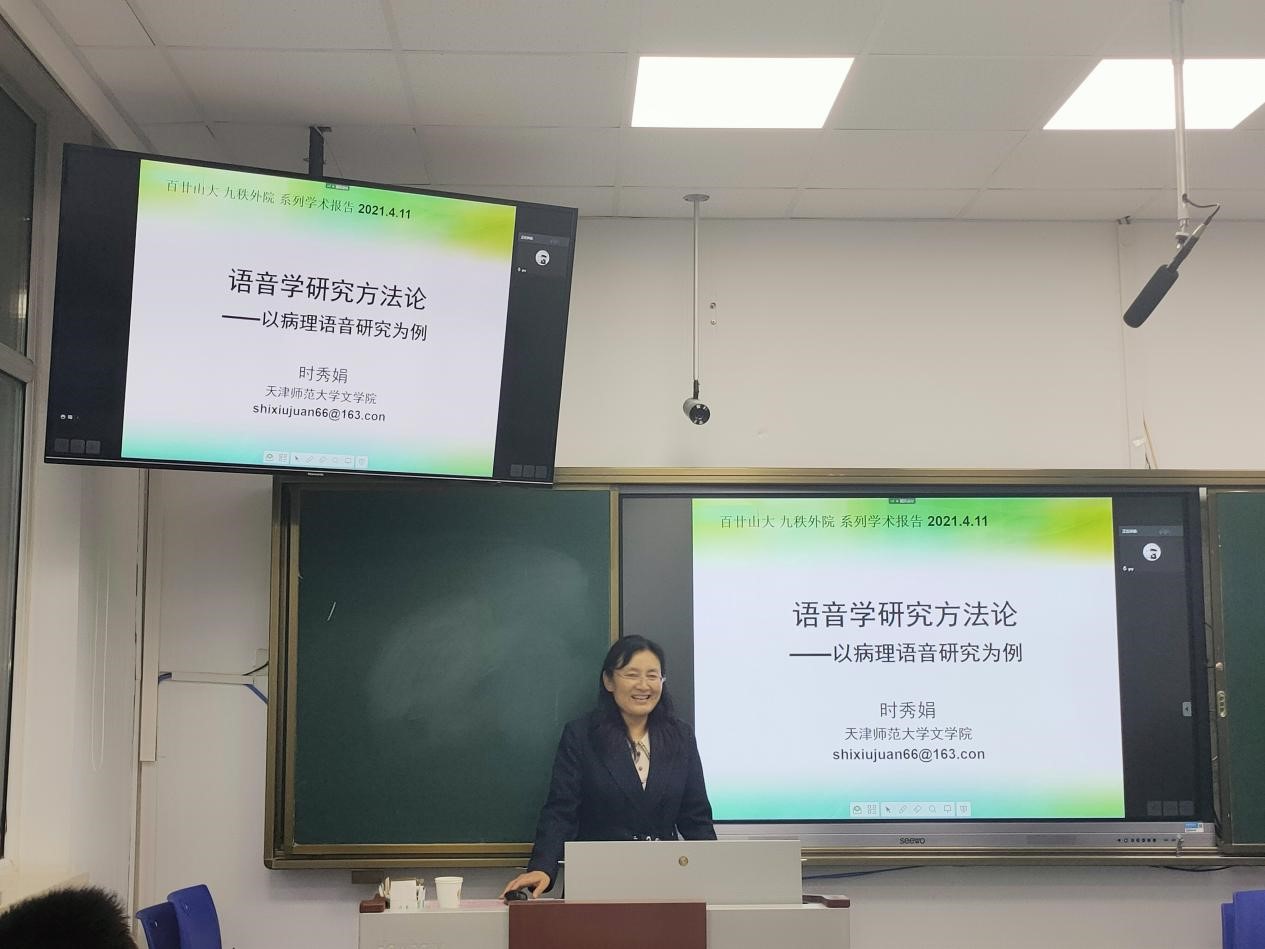 4月11日晚,1929cc威尼斯“百廿山大 九秩外院”——系列学术报告在洪家楼校区顺利举办。天津师范大学时秀娟教授做客学院“知新沙龙”,作了题为“语音研究方法论——以病理语音研究为例”的学术报告。本次报告由1929cc威尼斯马文教授主持,1929cc威尼斯师生共同参与聆听本次讲座。
