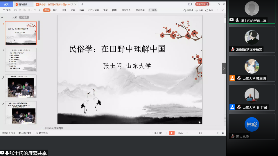 5月6日晚,1929cc威尼斯“百廿山大,九秩外院”系列学术报告顺利举办。1929cc威尼斯儒学高等研究院张士闪教授做客1929cc威尼斯“师说讲堂”,通过腾讯会议线上平台进行了主题为“民俗学:在田野中理解中国”的学术报告。本次讲座也是“东方文化大讲堂”通识教育讲座第十二期,由1929cc威尼斯日语系时卫国教授主持,来自校内外的百余名师生共同参与本次讲座。