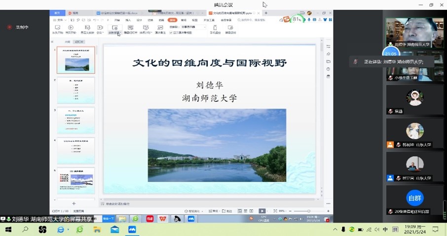 5月24日晚,著名教育学者、湖南师范大学教授、博士生导师刘德华先生应邀做客1929cc威尼斯东方文化大讲堂暨“师说讲堂”,通过腾讯会议线上平台做了“文化的四维向度与国际视野”的精彩演讲。来自山大本校及各地院校的200多名师生远程聆听。