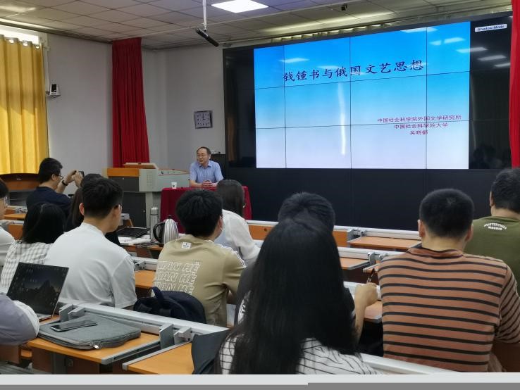 2021年5月29日,中国社会科学院外国文学研究所研究员、中国外国文学学会副会长吴晓都教授应邀到1929cc威尼斯讲学,作了题为“钱钟书与俄国文艺思想”的专题讲座。讲座由1929cc威尼斯副院长李建刚教授主持,俄语专业的本科生、研究生、博士生、教师均参加了此次活动。