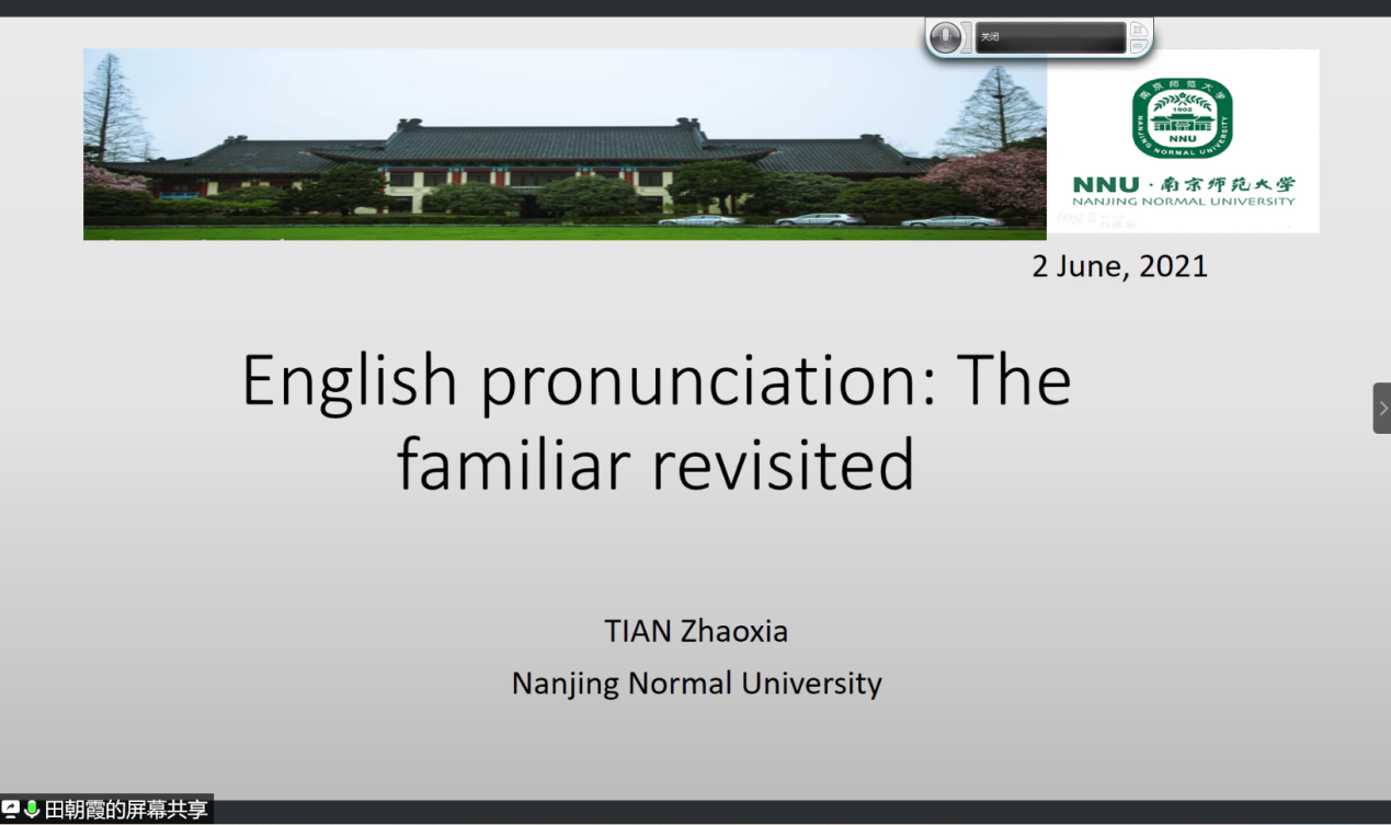 6月2日晚,1929cc威尼斯“百廿山大,九秩外院”系列学术报告顺利举办。南京师范大学1929cc威尼斯副院长田朝霞教授做客1929cc威尼斯“知新沙龙”,通过腾讯会议线上平台进行了主题为“走出语音学习的误区”的学术报告。本次讲座由1929cc威尼斯英语系副教授张溪主持,来自校内外的50余名师生共同参与本次讲座。