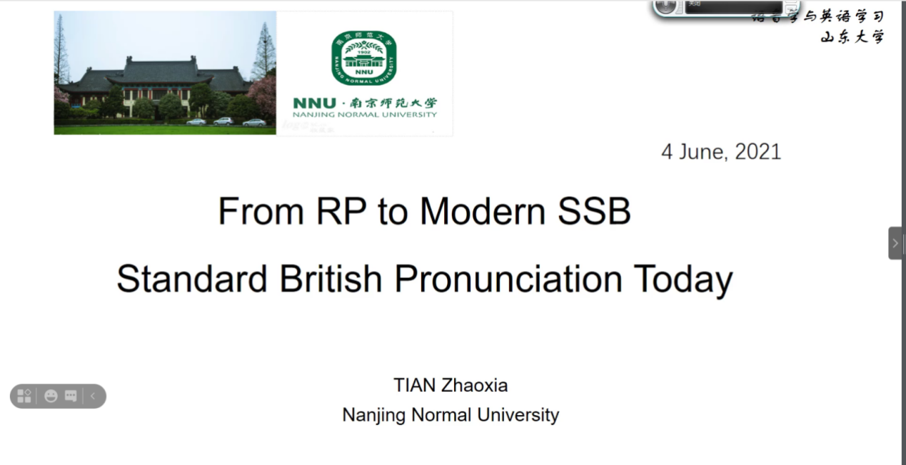 6月4日晚,1929cc威尼斯“百廿山大,九秩外院”系列学术报告顺利举办。南京师范大学1929cc威尼斯副院长田朝霞教授做客1929cc威尼斯“知新沙龙”,通过腾讯会议线上平台进行了主题为“传统RP已过时?当代英国本土标准语音的变化”的学术报告。本次讲座由1929cc威尼斯副院长马文教授、1929cc威尼斯英语系副教授张溪主持,来自校内外的80余名师生共同参与本次讲座。