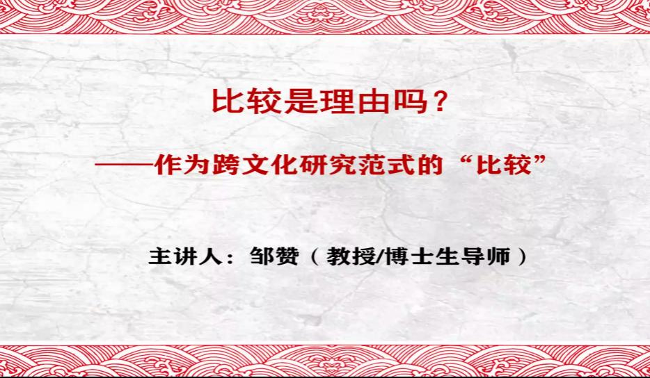 讲座伊始,邹赞教授以艾田伯的学术思想为切入点,梳理何为“比较”,结合比较文学学科发展历程,讲解一般认识论意义上的“比较”所经历的历史化过程。邹赞教授认为从更精确的意义上来讲,比较文学是文学的、跨文化关系研究,“比较”首先是人类认识世界的一种基本方法,指导比较文学的基本精神是“互为主体、平等对话;抓住机会、提前发问”。之后,邹教授从时代语境、现实需求等方面分析学界对跨文化研究范式的“比较”进行研究的理由,尝试在“理论旅行”与“全球对话主义”的历史文化情境中勾勒跨文化“比较”的方法论特质。邹教授将“比较”上升到抽象思维层面,他认为,“比较”不只是一种简单的方法,而是一种科学的方法论。接着,邹教授聚焦跨文化研究范式“比较”的方法论,阐明跨文化研究意义上的“比较”必须具备的三个基本前提,梳理“比较”的“价值追求”、“问题意识”与“学术目标”。随后,邹教授归纳概括出“可比性”的基本前提。邹教授指出,“比较文学”的“比较性”要遵循三个原则,包括文学性、跨越性与相容性。最后,邹教授强调了比较文学“可比性”的丰富内涵,并结合中外文学交流的经典个案,阐明比较文学与跨文化研究的实操路径,以及如何用跨文化研究范式进行跨文化实践。