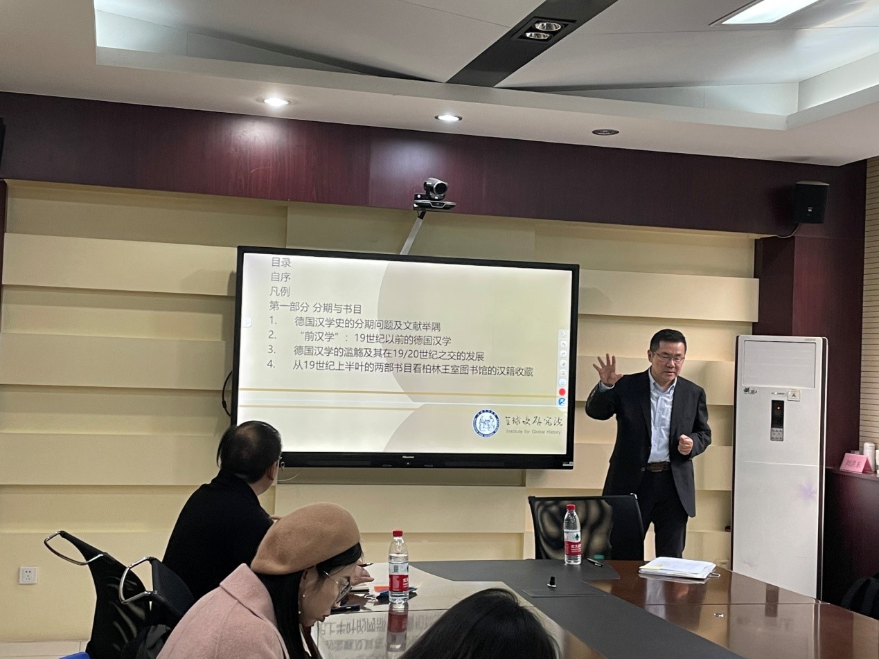 首先,李雪涛教授就本场报告的主要内容作了简要说明,并以专著《德国汉学研究史稿》为切入点说明了其研究“汉学研究”的契机。接着,李雪涛教授从结构与内容两个方面阐述了其研究的特点,即以问题为中心,在此基础上实现专门史与问题史的结合。在他看来,并不存在一个本质主义上的对中国文化和中国文学的理解,因此阐释学的意义就变得尤为重要——所谓的理解就像阐释一样,是局部与整体的循环,是一个过程,具有历史性。然后,李雪涛教授从汉学史-学术史的角度梳理了我国对德国汉学的研究,指出其大致经历了汉学、域外汉学、海外汉学、国际汉学等几个阶段。他强调,学界需要重视德国汉学——只有通过国际汉学的再研究,我们才能做到“去熟悉化”,才能对历史产生新的见解。接着,李雪涛教授以福兰阁、卫礼贤、傅吾康等德国汉学家为例介绍了德国汉学的历史和发展,并主张将德国汉学置于当时欧洲学术思想的脉络中进行理解。同时,李雪涛教授表示,德国汉学的历史是与时代史、思想史、文化史交织在一起的“纠缠的历史”,它不仅仅属于中国,更属于德国、欧洲乃至全世界。这就需要我们树立整体观和互动观,运用全球史的视角和跨学科的方法加以研究。