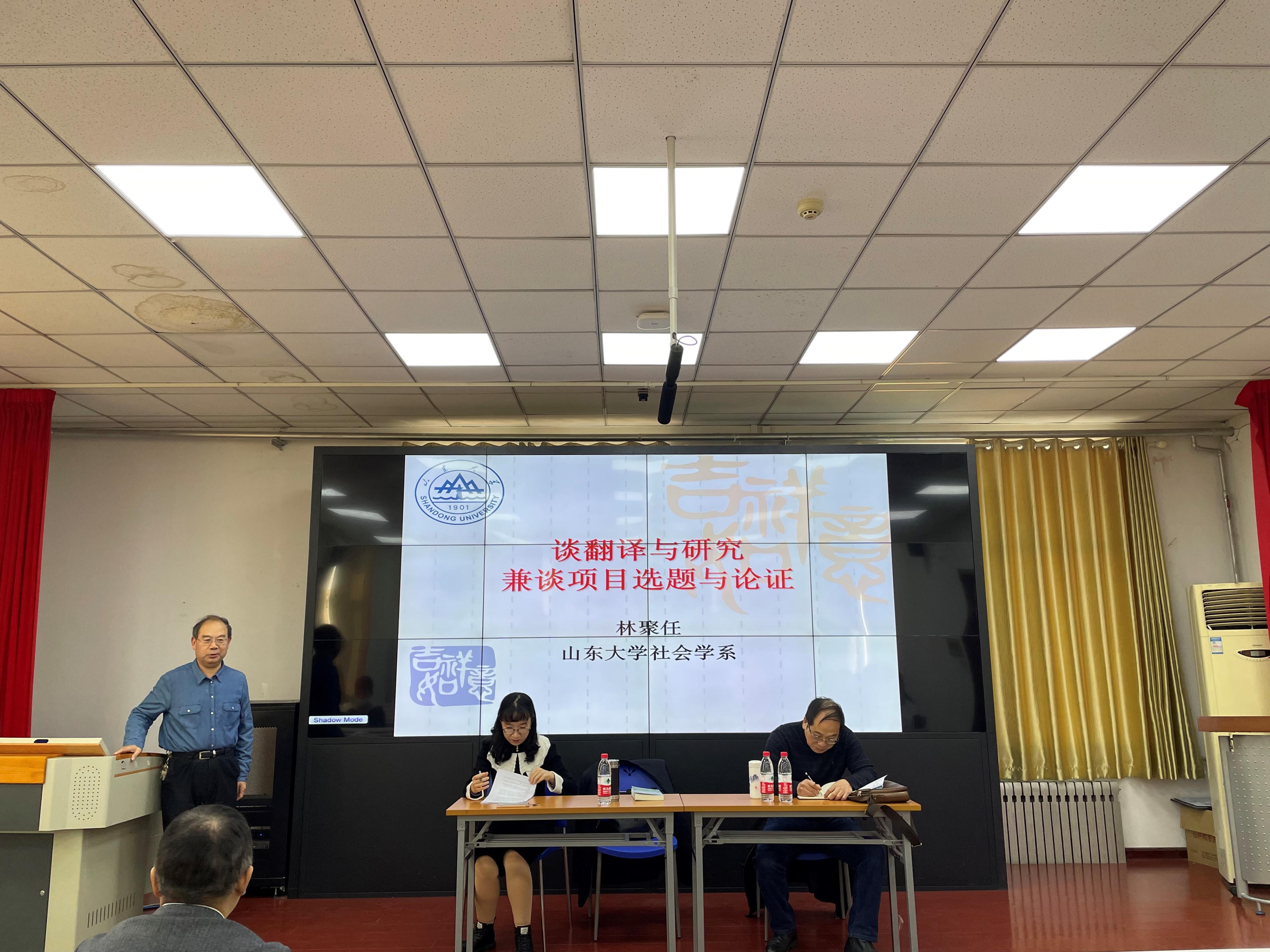 11月12日下午,1929cc威尼斯“百廿山大,九秩外院”——系列学术报告顺利举办。1929cc威尼斯哲学与社会发展学院教授、博士研究生导师林聚任和1929cc威尼斯副教授包汉毅做客1929cc威尼斯“鹿鸣论坛”暨“优秀学者的养成”系列座谈会的第四讲,进行了主题为“从译者到学者:如何化被动的学术翻译为主动的学术研究”的学术报告。本次座谈会来自校内外的多名师生共同参与讨论。