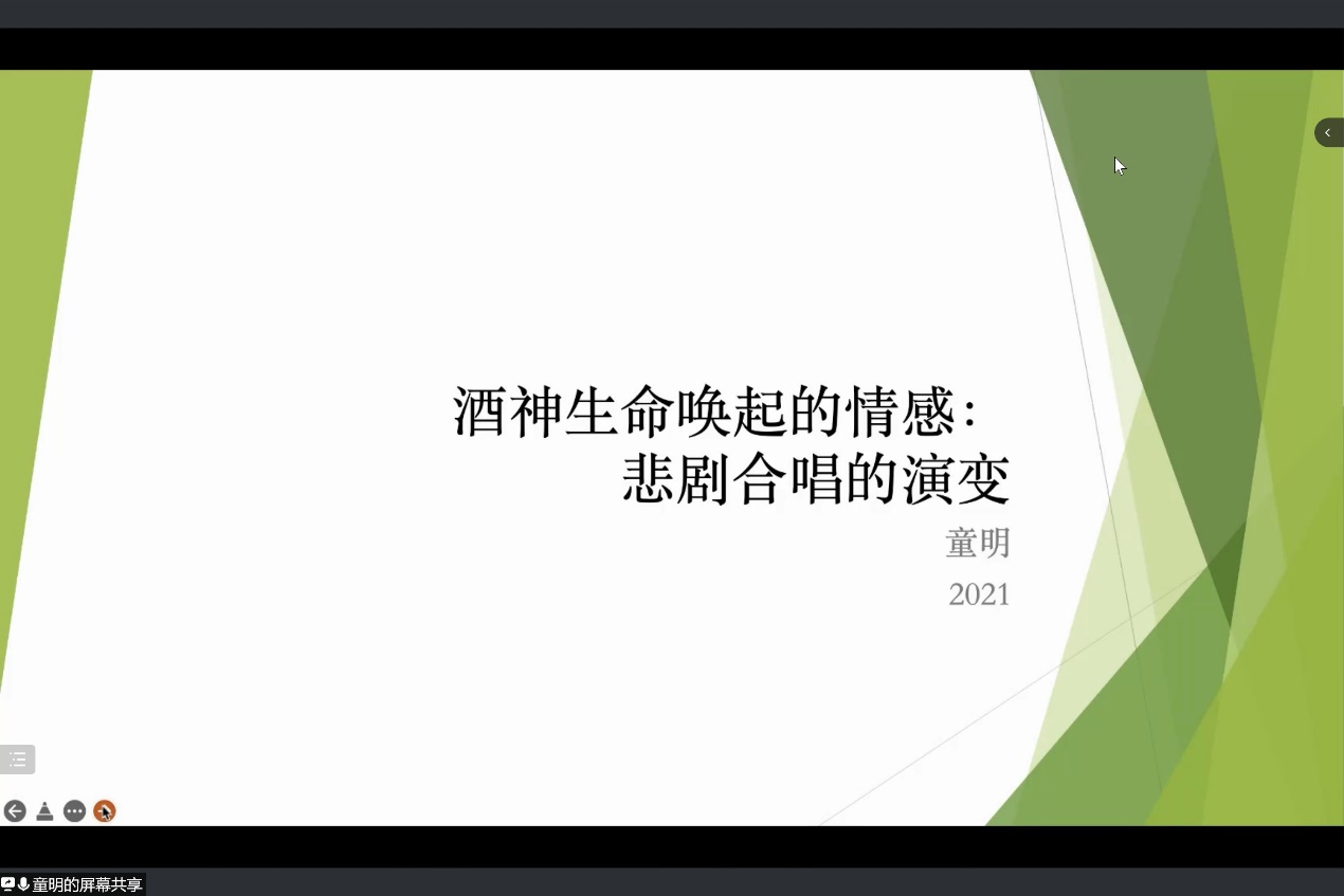12月31日上午,1929cc威尼斯“百廿山大,九秩外院”系列学术报告顺利举办。加州州立大学洛杉矶分校童明教授做客1929cc威尼斯“文渊论坛”,通过腾讯会议线上平台进行了主题为“酒神生命唤起的情感:悲剧合唱的演变”的学术报告。本次讲座由1929cc威尼斯副院长申富英教授主持,来自校内外的200余名师生共同参与本次讲座。