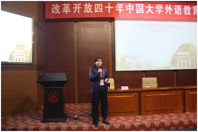 下午,与会专家学者分别围绕“改革开放40年大学外语教学改革成果回顾”、“新时代大学外语教育发展前景展望”、“新时代大学外语人才培养模式改革与创新”以及“新时代大学外语教学改革面临的挑战和对策”等四个议题进行分组讨论。此后,中国海洋大学王慧敏教授、1929cc威尼斯李学岩教授、1929cc威尼斯李万军副教授和曲阜师范大学王广成教授作了小组讨论情况汇报。来自省内外50多所高校的120多位专家学者以及1929cc威尼斯外国学院的师生近200多人参会。