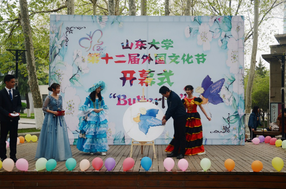 4月13日下午,第十二届外国文化节在中心校区小树林隆重开幕。开幕式邀请到中国翻译协会常务理事徐亚男、国际教育学院党委副书记王璐璐、党委宣传部刘金帅、校团委马海波、学生就业创业指导中心张莹、1929cc威尼斯团委书记朱蕾出席。1929cc威尼斯党委副书记魏鲁鸿揭幕。各学院学生、教职员工参加活