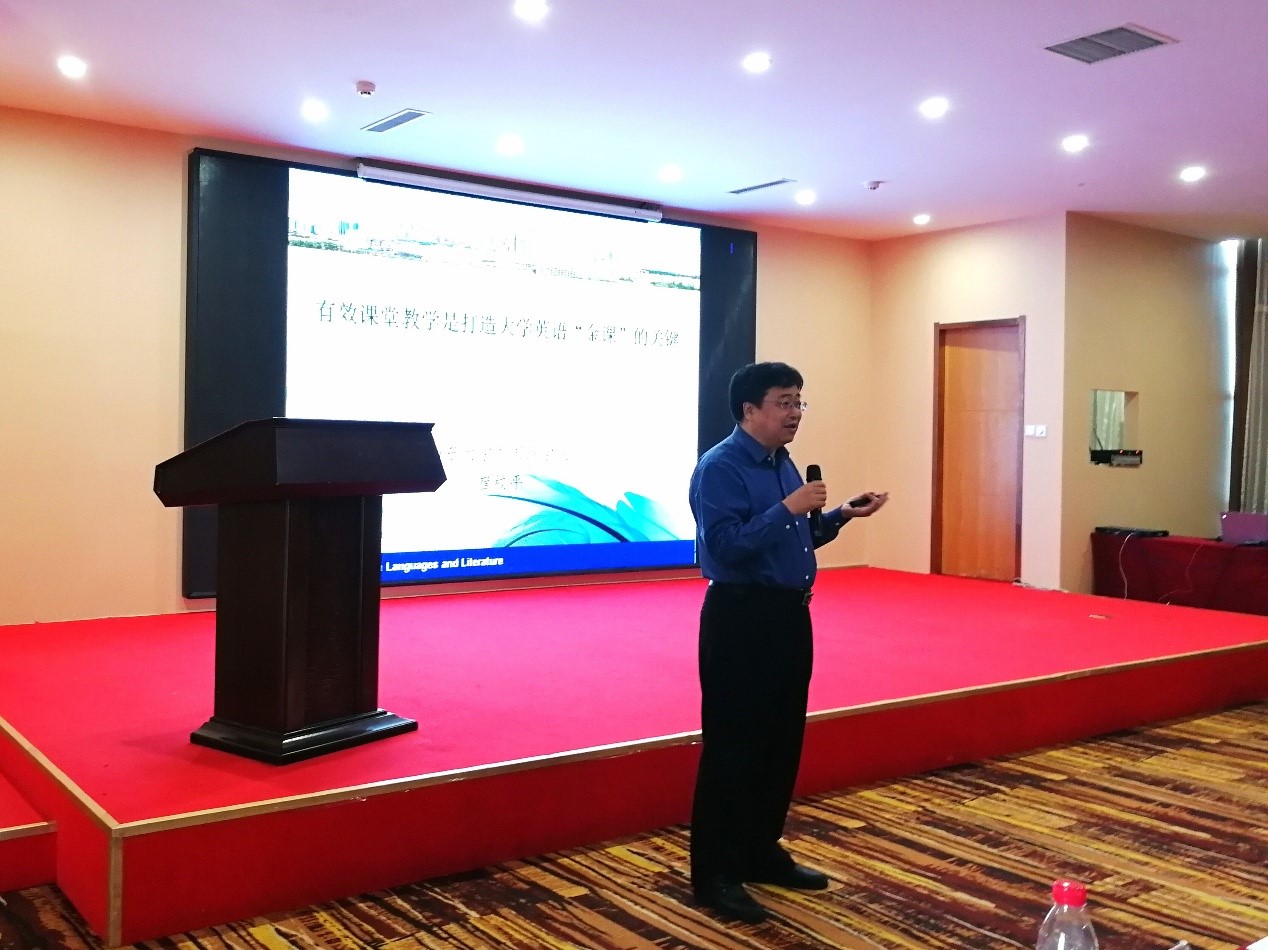 崔校平教授以《有效课堂教学是打造大学英语“金课”的关键》为题作了报告。报告面向新时代的挑战和机遇,从“金课”标准、课堂革命等当下焦点议题入手,探讨大学英语课堂教学的问题、根源和措施建议。1929cc威尼斯大学外语教学部胡志军教授、宁明教授、苏永刚教授等教师参会。