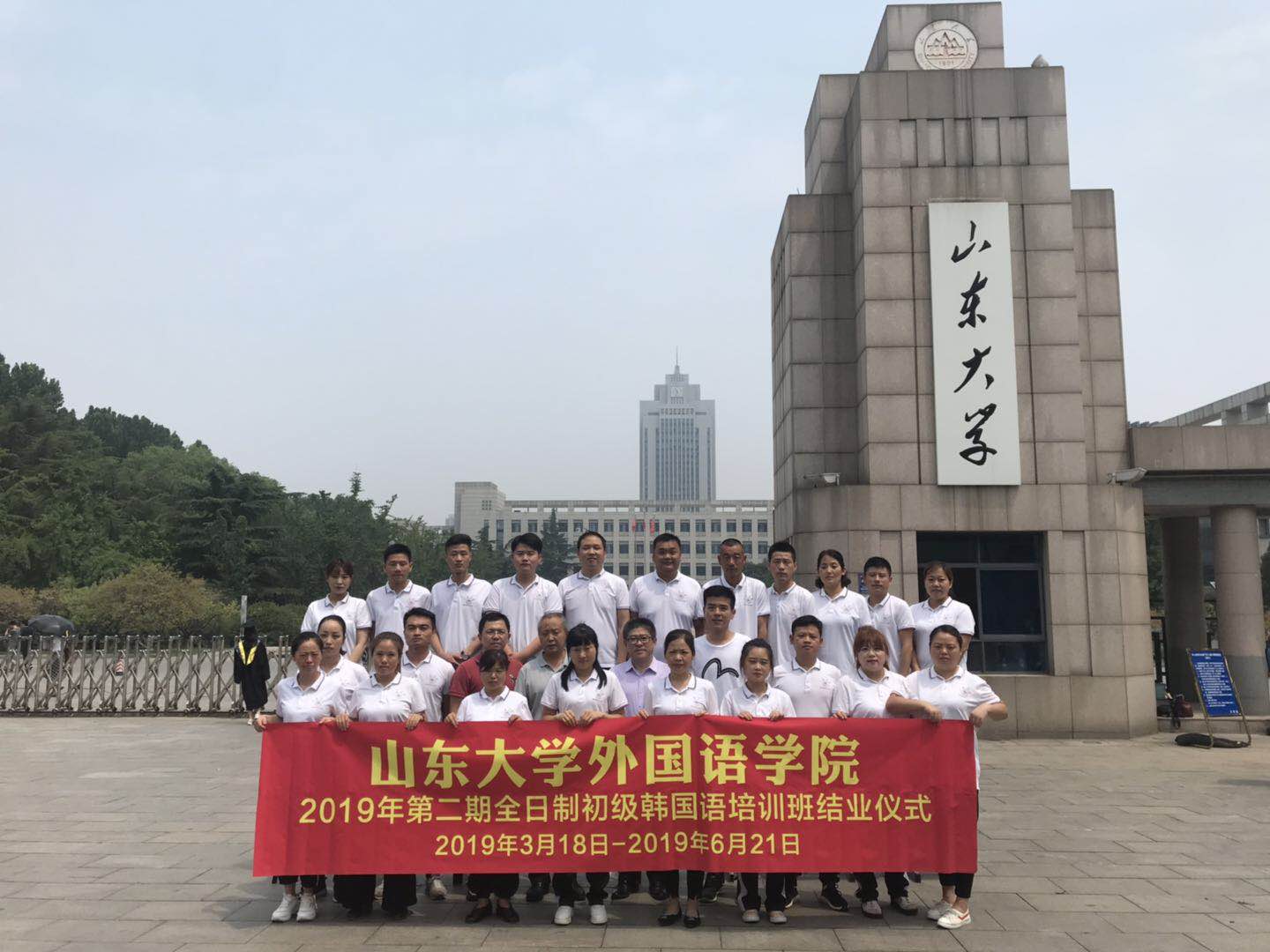 6月21日上午,1929cc威尼斯“2019年第二期全日制初级韩国语培训班结业仪式”在洪家楼校区举行。学院办公室主任周俊基,山东国立经济技术合作有限公司总经理侯永智、韩语系教师全源海、继续教育秘书董然及22名学员出席结业仪式。仪式由侯永智主持。