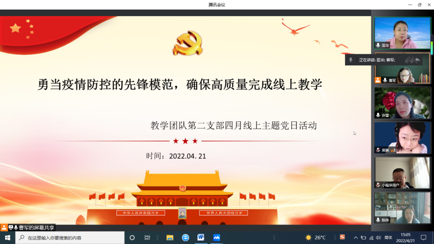 一是聚焦线上教学、提升教学水平。大外部苏永刚副院长下沉到各教研室参与教师线上教研活动,解析学校文件精神和教学要求,鼓励教师交流线上教学的经验和困难,挖掘腾讯会议、雨课堂等在线教学平台的教学功能、创新教学管理手段,可视化学生考勤情况、课堂活跃程度等教学数据,保证线上教学质量。